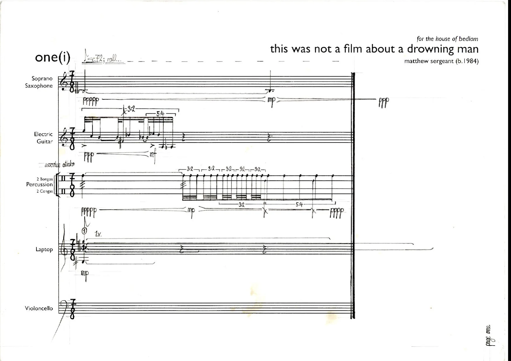 this was not a film about a drowning man was written for the house of bedlam and first performed by them on 17th October 2008 as part of The BMIC's Cutting Edge series at The Warehouse, London.